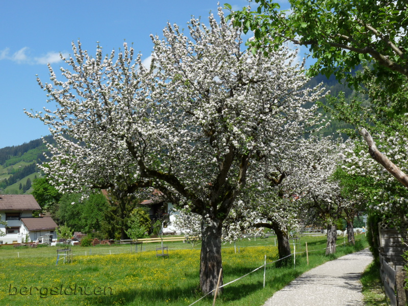Mit der gelben Löwenzahnwiese kommt die Baumblüte noch besser zur Geltung.