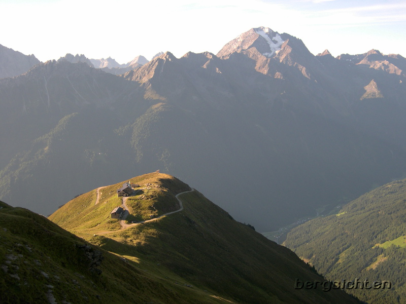 Die Starkenburger Hütte (2237 m) m liegt auf einem herrlich gelegenen "Vorgipfel". Die Aussicht auf die Stubaier Berge macht Lust auf den Stubaier Höhenweg.