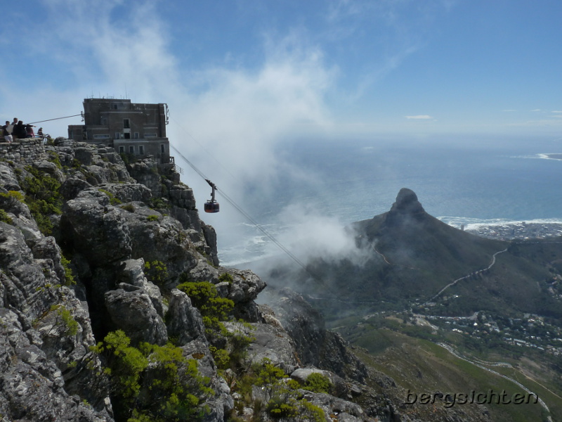 Mit der Seilbahn gelangt man mühelos auf den Tafelberg. Während der Fahrt dreht sich die Personenkabine um 360°.